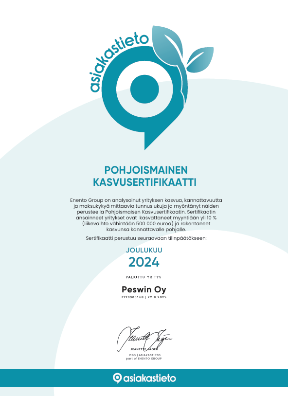 Olemme aloittaneet kesäkuun alussa kansainvälistymis -hankkeen, joka on Euroopan unionin osarahoittama. Hanke kestää kuusi kuukautta, kesäkuun alusta marraskuun loppuun. Hankkeen tarkoituksena on kartoittaa Peswin Oy:n kansainvälistymis- mahdollisuuksia Ruotsiin ja Viroon.